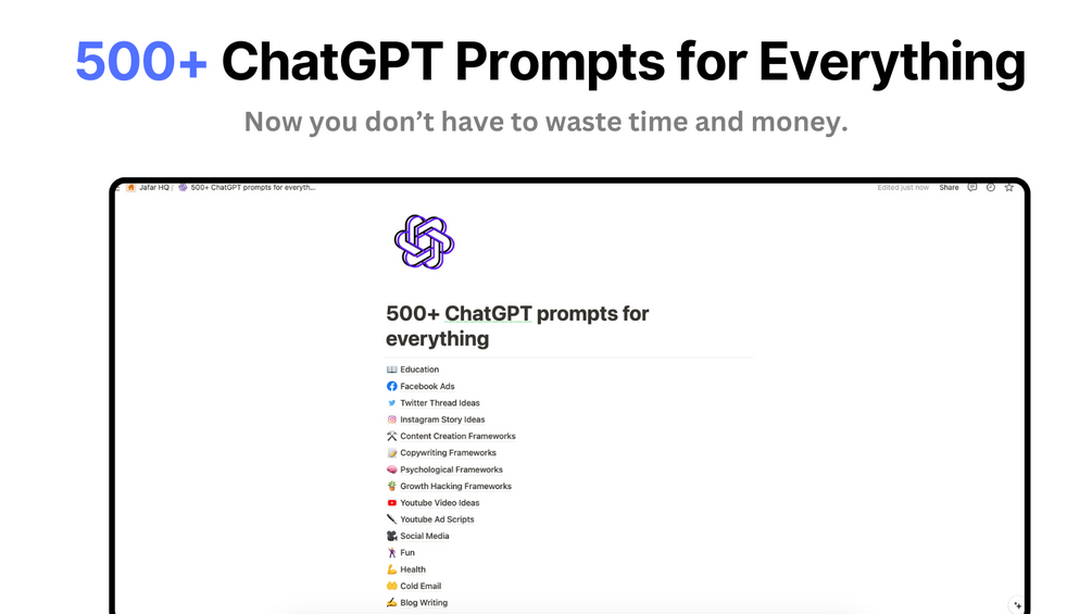 I curated this list of 500+ prompts for you to help you save time and money.